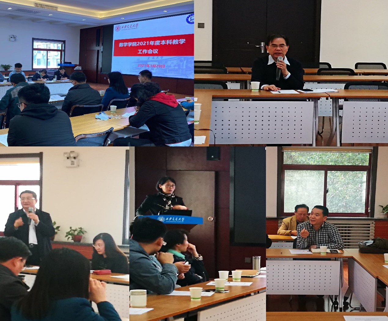 召开2021年度本科教学工作会议。徐宗本院士、数学学院院长赵彬、分党委书记颜莉、教学副院长李继成、研究生副院长肖燕妮、党委副书记李义宝、学科带头人、各系(中心)正、副系主任及教师代表参加会议,教学副院长易媛主持会议。