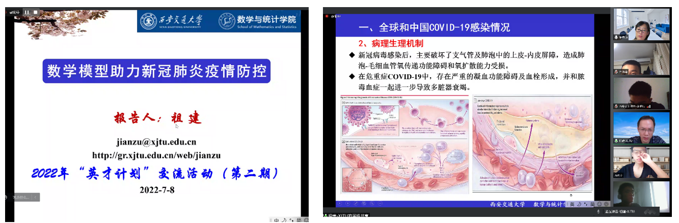 祖建教授以“数学模型助力新冠肺炎疫情防控”为题,结合多年来从事生物数学和传染病动力学研究的亲身经历,深入浅出地为同学们介绍了数学在传染病防治中的实际应用。祖老师首先介绍了果冻传媒