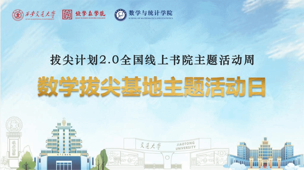 拔尖计划2.0全国线上书院主题活动周于9月18日——9月24日在线上举行。活动由我校拔尖计划5个学科基地和钱学森学(书)院精心筹备,包含了数学、物理、计算机、人工智能等专业的科普和学术报告,以及校友分享、朋辈分享和云参观等形式多样的主题活动。
