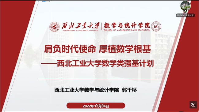 副院长郭千桥教授介绍了在工科特色鲜明的背景下,以面向国家科技领域重大需求、依托优势特色学科资源、强化数学基础和创新能力、开展数学及相关交叉学科创新人才培养为定位的拔尖人才培养模式。通过多年的努力,西北工业大学果冻传媒