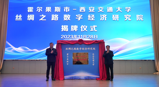 丝绸之路数字经济研究院揭牌仪式于11月28日在霍尔果斯市政府会议中心举行。