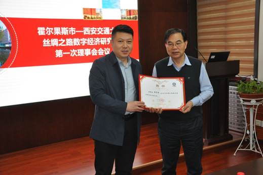 霍尔果斯经济开发区党工委委员,市委常委、组织部部长潘熹代表霍尔果斯市人民政府聘请徐宗本院士为研究院名誉院长并颁发了聘书。