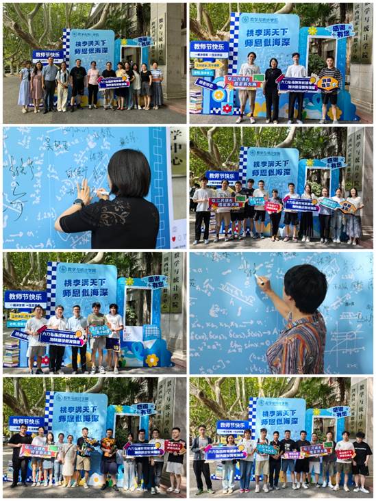 教师节当天,学院精心策划开展了“最美留影·礼赞师恩”活动。9月10日上午,同学们在数学楼前等待老师下课,为老师送上美好的祝愿和真挚的感谢。“师恩难忘”“感谢有您,不忘师恩”“老师,您辛苦了!”“桃李满天下,师恩似海深”同学们纷纷为老师们送上鲜花和祝福,邀请老师们合影留念,每一张照片背后都是一个关于成长与感恩的故事,这些珍贵的画面不仅记录下了师生之间深厚的情谊,也成为了教师节最美好的记忆。
