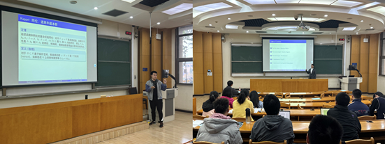 数学试验班(国家拔尖计划)李昆岳做了《矩阵群交换关系下的VC-dimension等三个代数组合科研课题》主题报告;针对报告中的具体内容,双方学生进行了深入交流和探讨。