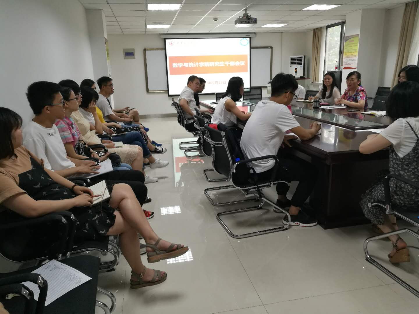 召开研究生干部大会。会议由党委副书记颜莉主持,研究生会主席团成员、各年级党支部书记、各班班长、兼职辅导员出席了此次会议。
