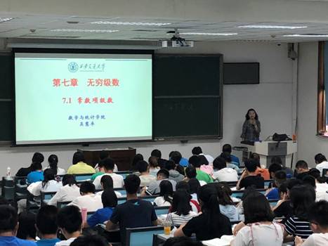 课堂上,吴慧卓老师通过古希腊学者阿基里斯的著名“芝诺悖论”—人龟赛跑问题引入常数项级数和无穷级数概念,并通过级数的定义和时间的有穷性为同学们推翻了该悖论,生动形象地讲解了对常数项级数及其应用的正确理解。