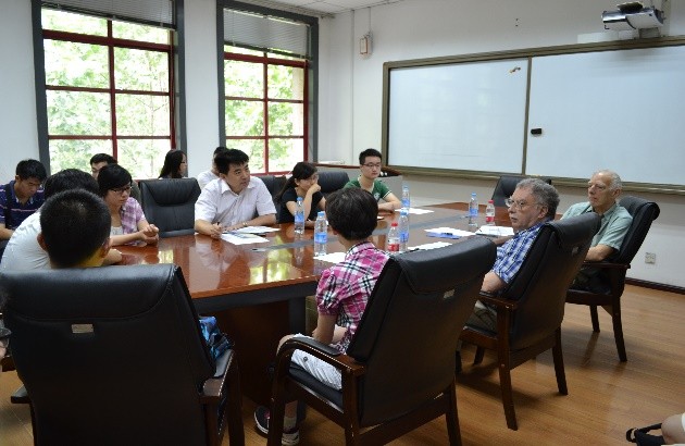 此次座谈主要围绕美国佐治亚理工学院与数学试验班本科生国际交流项目的合作。首先,12级试验班学生向Prof. Jeffrey S. Geronimo和Prof. Rafael de la Llave逐次介绍了个人基本情况,让两位教授对这一批将于2015年春季赴佐治亚交流学习的试验班学生有了初步的认识与了解,并对同学们所关心的一些问题进行了耐心的解答。随后,11级试验班几位学生代表与12级试验班同学分享了今年春季赴佐治亚理工学院学习的收获、个人的经历与体会。最后,两位教授鼓励同学们努力学会适应新环境,利用国外交流学习的平台为自己未来的学术生涯打下坚实的基础,座谈会在轻松活跃的气氛中结束。