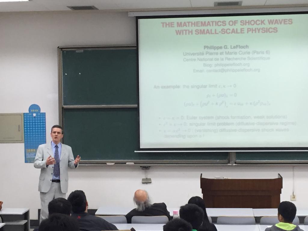 4月9日上午, Philippe G. LeFloch教授为数学学院学生做了主题为“The mathematics of shock waves with small-scale physics”的学术报告。学院李开泰教授、朱旭教授、李东升教授及部分青年教师也听取了此次报告。