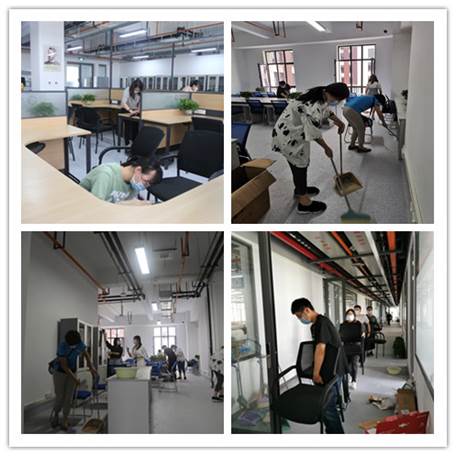 行政与实验党支部联合硕2018级支部师生党员,来到创新港四号巨构泓理楼开展志愿服务活动,对研究生工作室、研究生计算实验室、教师实验室进行卫生清理及布置,为新生报到以及新学期各项工作的开展提供干净、温馨的环境,为创新港的入驻及搬迁工作助力护航。
