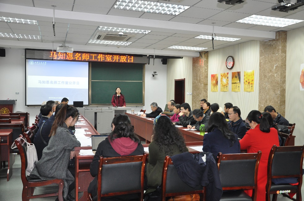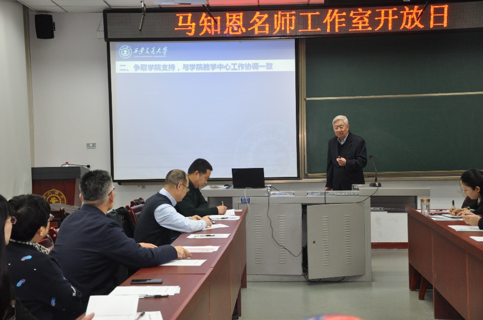 教师发展中心副主任晏文璟教授致开场辞,介绍了成立马知恩名师工作室成立的重要意义,对工作室的各项工作给予高度的肯定。工作室负责人马知恩教授介绍了工作室成立以来的工作情况、工作室“个性化、高要求、重实效”的后备名师培育理念以及工作室近期的活动安排。马知恩教授指出,工作室成立三年来,不断争取学院支持,在学院内遴选由学院资助的后备名师7人,将后备名师的培育工作与学院的教师教学能力提升工作相结合,深挖学院教师潜力、扩大工作室受益范围。在工作室指导专家组的帮扶下,协助后备名师明确差距、确定目标、制定计划,不断提升后备名师的教学能力和水平。近三年,工作室坚定落实学校有关“名师、名课、名教材”建设工程的要求,稳步推进工作,开展了丰富充实的后备名师培育工作以及工作室建设工作,共组织开展12次工作室建设会议、26次公开示范课及课后专家反馈、18次后备教学名师试讲点评(邀请教学专家听课1小时、示范点评1小时并进行视频录像反馈给个人)、25次教师座谈及青年教师谈话帮扶活动、4次教学专家专题报告和集体研讨。此外,工作室还针对每位后备名师的特点和需求,指导后备名师组织申报材料、申报教改课题,撰写教改论文、提出修改及投稿建议并且推荐后备名师参与教材编写工作。