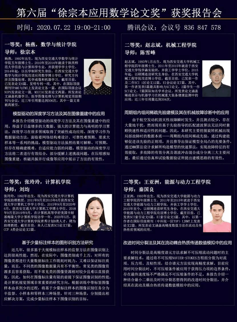 数学、信息等学科的发展与人才培养,提高研究生学术水平和培养质量,推动学科交叉与融合。第六届徐宗本应用数学论文奖获奖者为果冻传媒