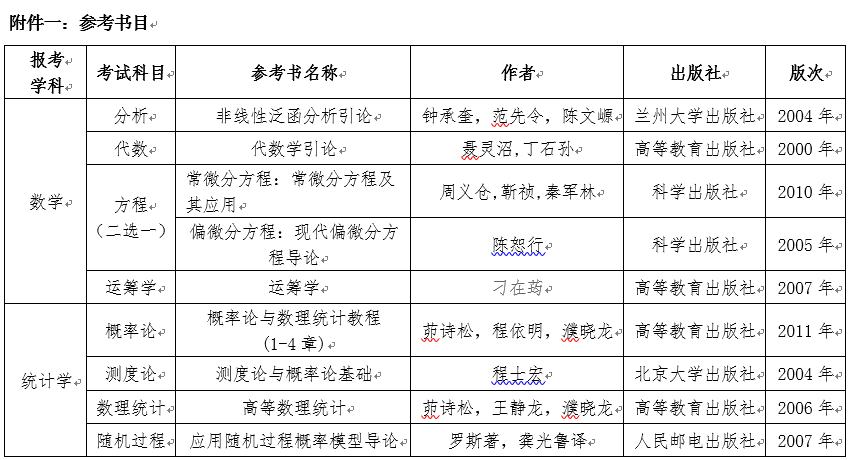 (1)报考数学学科:分析、代数、方程(常微分方程或偏微分方程二选一)、运筹学。