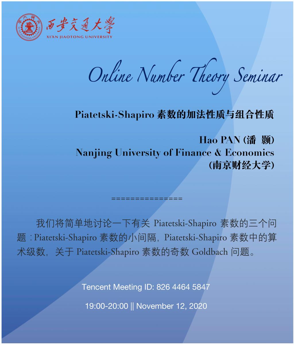 【数论讨论班】南京财经大学潘颢教授 (2020.11.12)