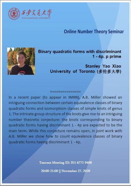 多伦多大学Stanley Yao Xiao博士学术报告通知