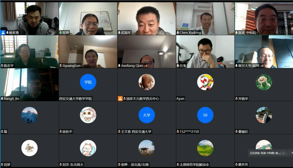 12月19-22日,国家天元数学西北中心在线举办“模型数据混合驱动的石油勘探反演方法专题研讨班”。研讨班邀请北京大学张平文院士担任活动首席科学家,中科院数学与系统科学研究院张波研究员、西安交大杨家青副教授为活动召集人。活动邀请了十余位国内外知名专家分享他们关于正演及反演的数学理论与快速算法等方面的最新研究成果,来自31所高校及科研院所的百余位学者在线参加。