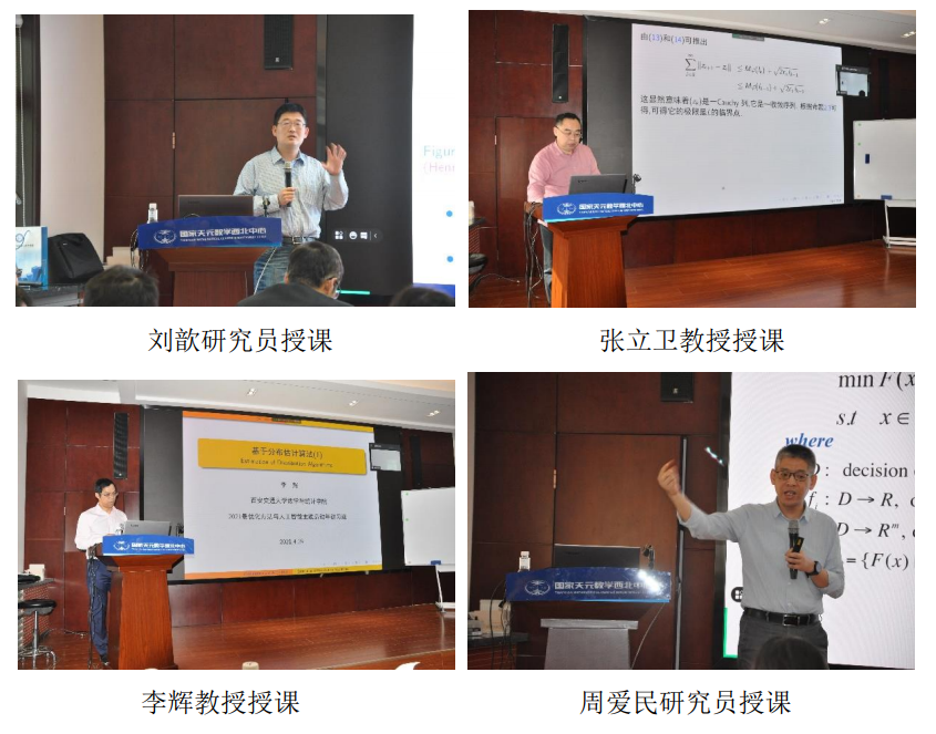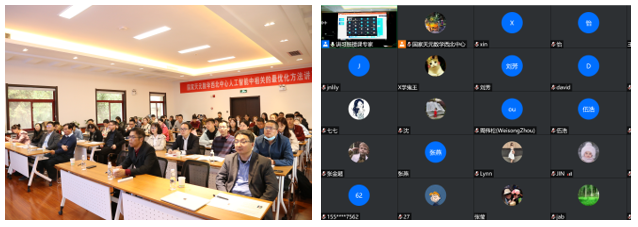 开幕式结束后,为期一周的讲习班正式开始。刘歆研究员在“分布式优化方法与应用”课程中详细介绍了几类典型的分布式优化算法;张立卫教授围绕“非凸优化理论与方法”介绍了非凸非光滑邻近交替线性极小化方法、半代数约束非线性规划的上控极小化方法等内容。周爱民教授和李辉教授共同讲授了“模拟演化计算”课程,内容涵盖了演化多目标优化、分布估计算法等。与会学员被精彩的课程深深吸引,大家通过线上和线下两种方式踊跃提问,就课程内容和自己关注的问题与专家做了深入交流,纷纷表示收获颇丰。