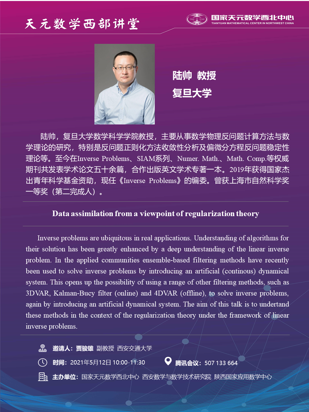 【天元数学西部讲堂】复旦大学陆帅教授学术报告通知(2021.5.12)