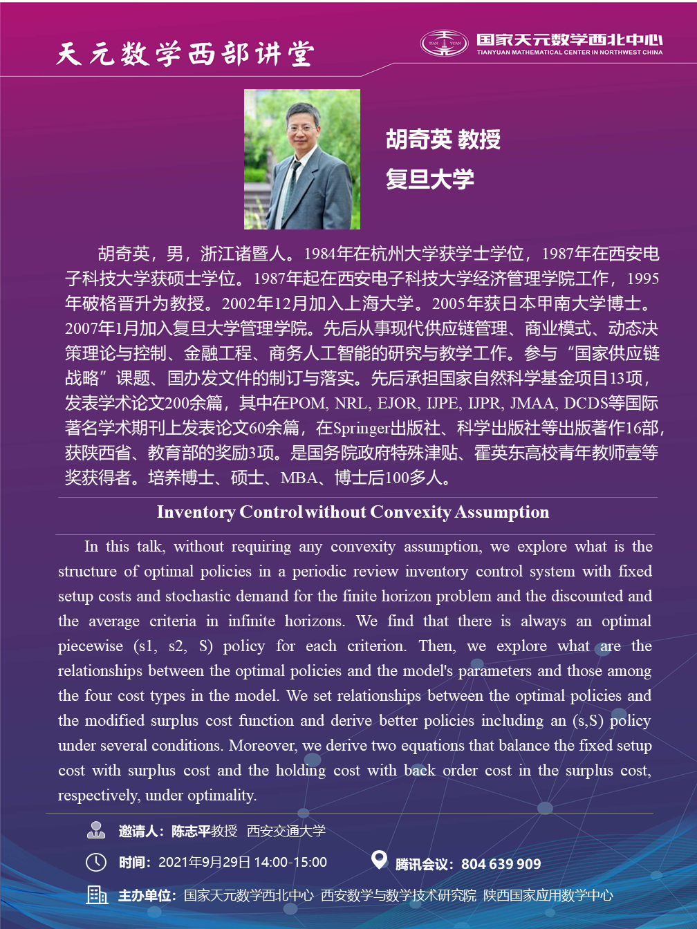 【天元数学西部讲堂】Inventory Control without Convexity Assumption