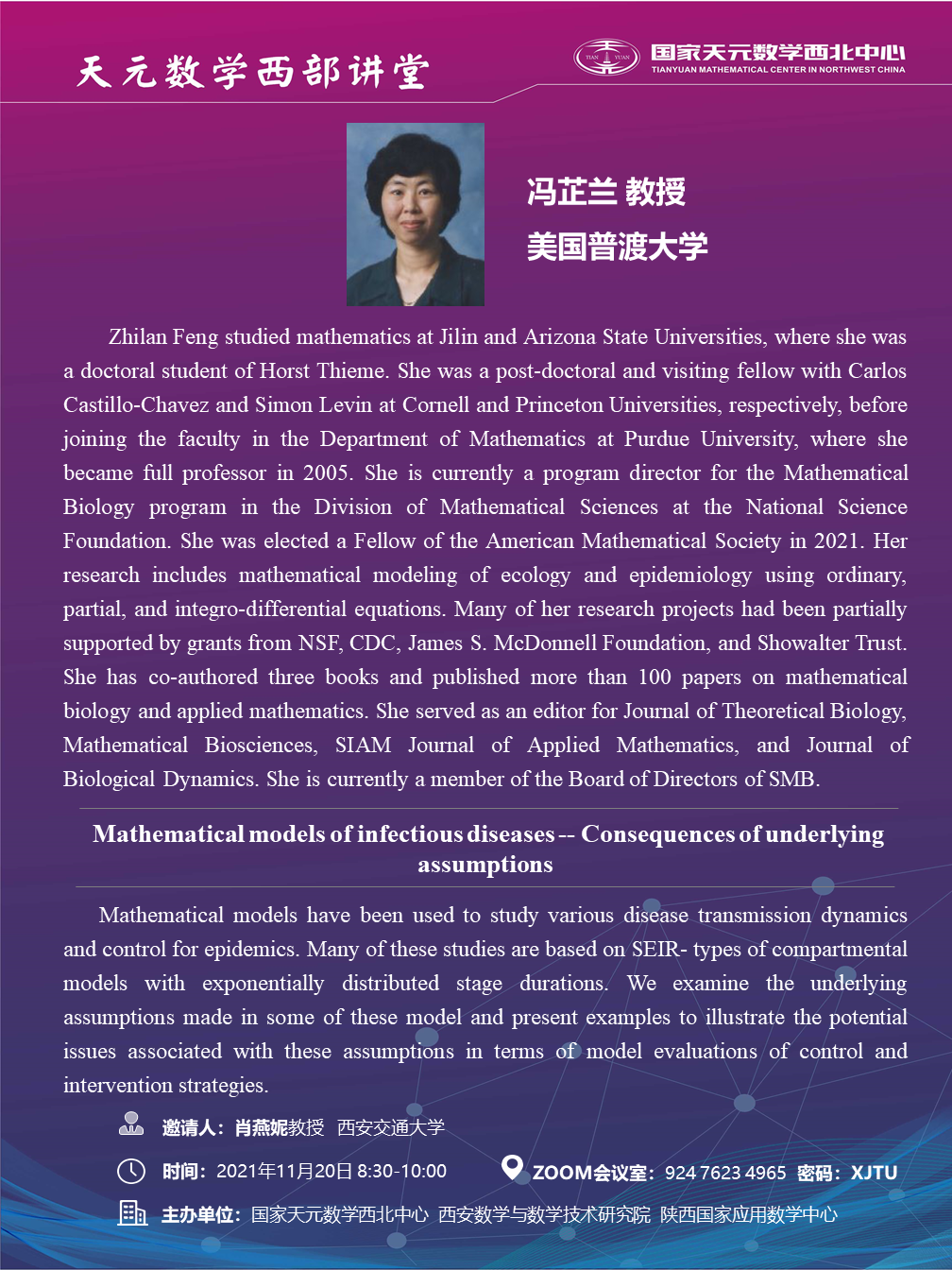 【天元数学西部讲堂】Mathematical models of infectious diseases -- Consequences of underlying assumptions