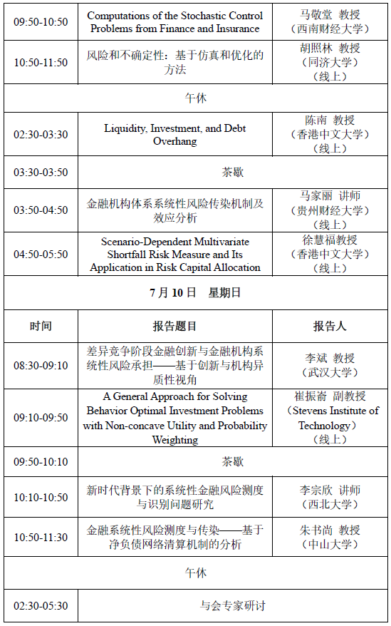 举办“系统性风险的量化建模与防控专题研讨班”。 该活动是中心2022“随机分析与量化金融”主题年活动。专题研讨班将通过剖析全球化、信息化时代带来的系统性金融风险的特点,从国家层面宏观研讨金融系统性的风险描述与控制问题,为国家从宏观层面更好地控制证券市场、银行系统与保险市场间的综合性系统风险提供政策建议。