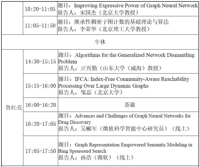 王卫教授、鲁红亮教授共同组织召集。本期研讨班将深入探讨图论、图计算和基于图的认知技术及其在人工智能中的应用问题;使用图的强大关联分析能力,研究科学计算领域中的图划分、图着色、图匹配等问题;探索解决这些问题的图计算和图机器学习技术,促进国内图论和图计算方向的发展。