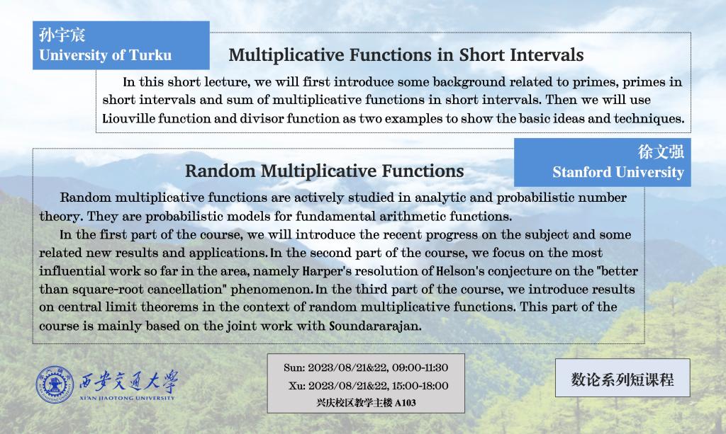 【数论短课程】 图尔库大学孙宇宸、斯坦福大学徐文强(2023.08.21&22)