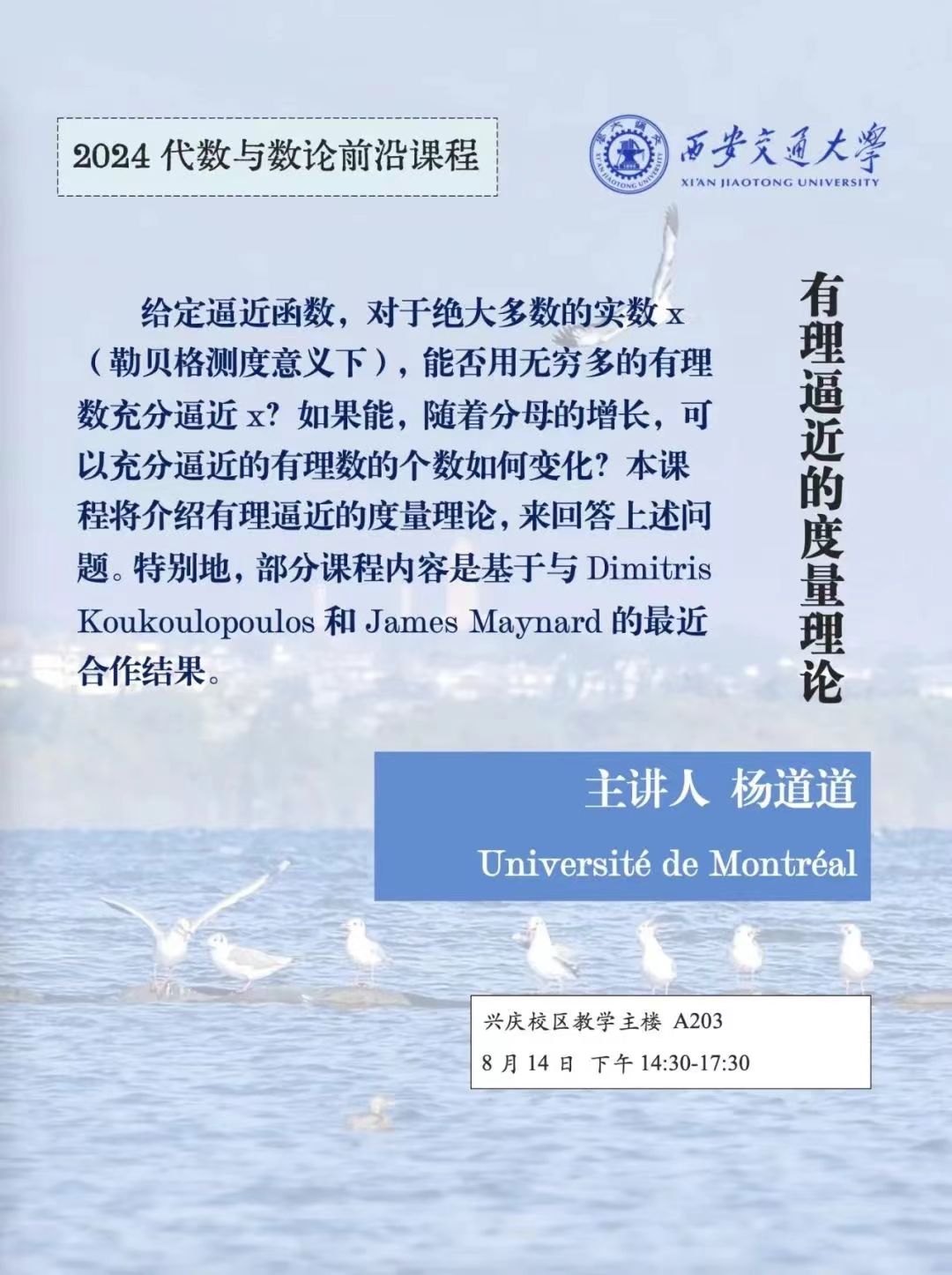 【数论短课程】 蒙特利尔大学杨道道 (2024.08.14)