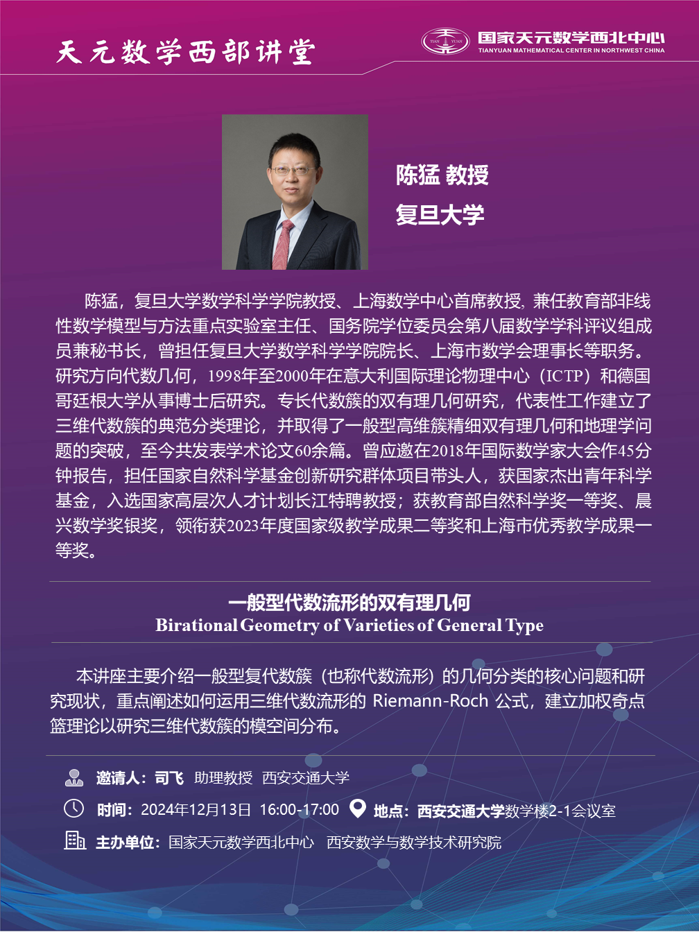 【天元数学西部讲堂】复旦大学陈猛教授学术报告