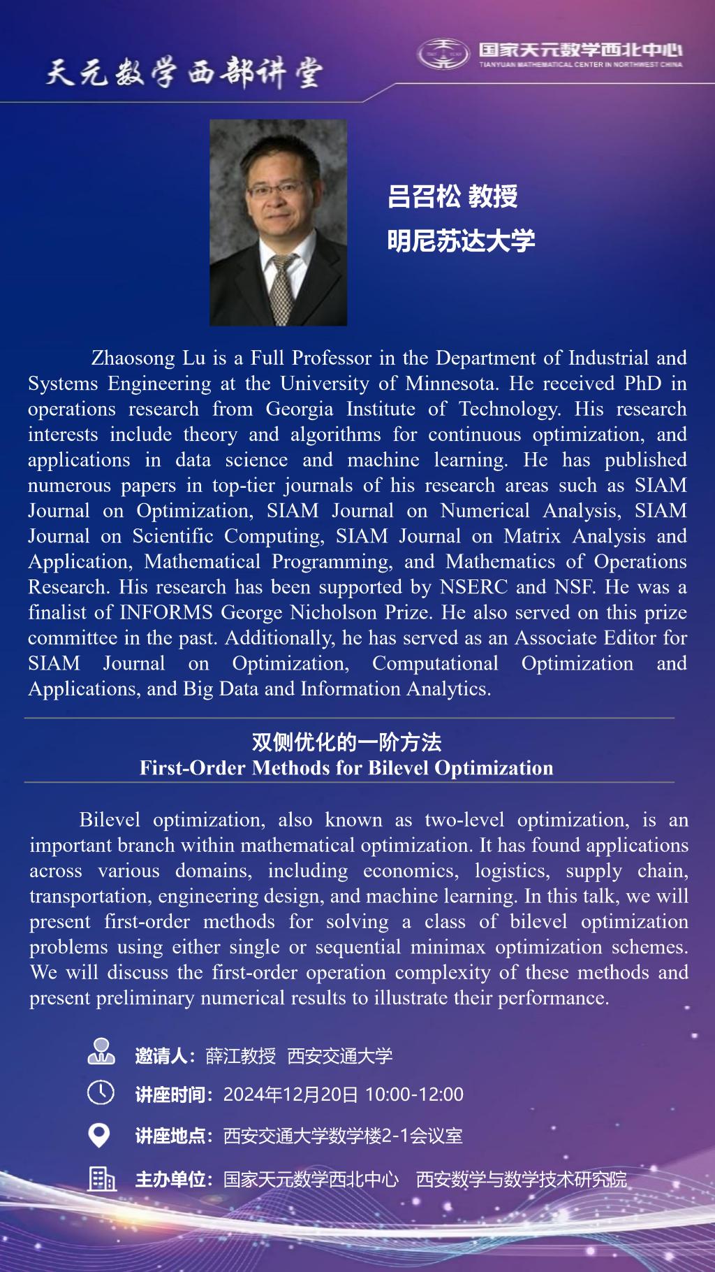 【天元数学西部讲堂】明尼苏达大学吕召松教授学术报告
