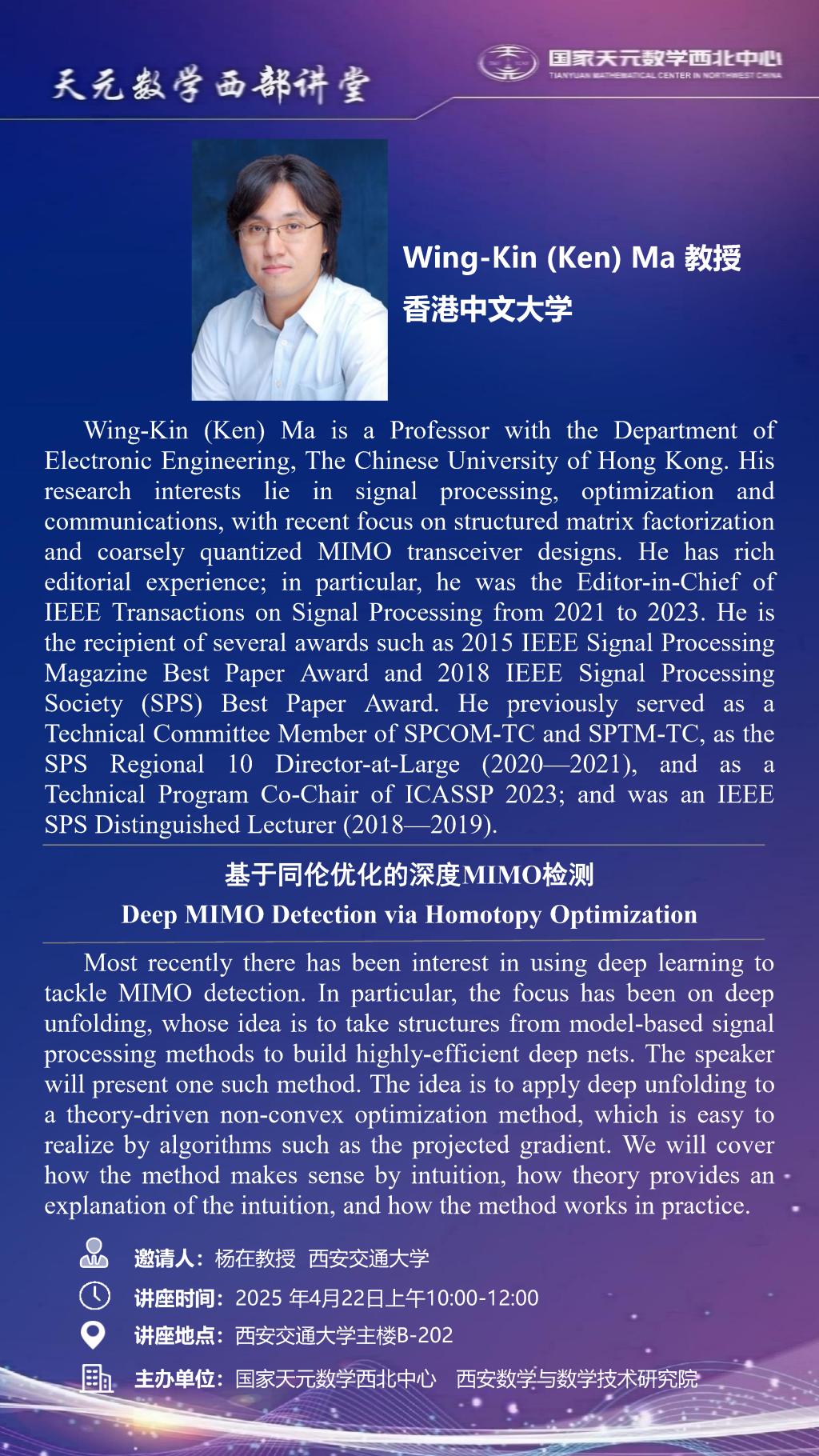 【天元数学西部讲堂】香港中文大学Wing-Kin (Ken) Ma 教授学术报告