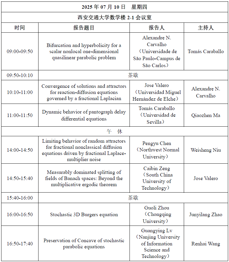 联合承办。本次研讨会旨在交流讨论无穷维动力系统及相关领域的前沿问题,并邀请国内无穷维动力系统领域的知名专家学者就相关领域的热点做学术报告。