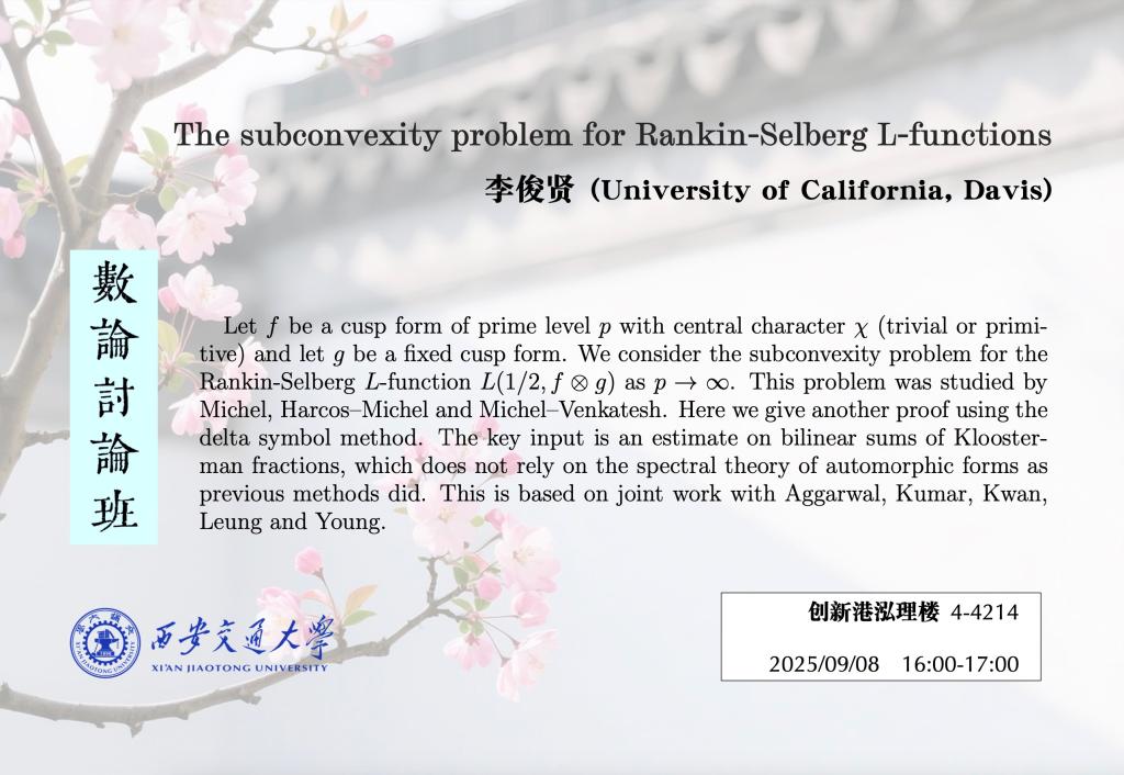 【数论讨论班】加州大学戴维斯分校李俊贤 (2025.09.08)