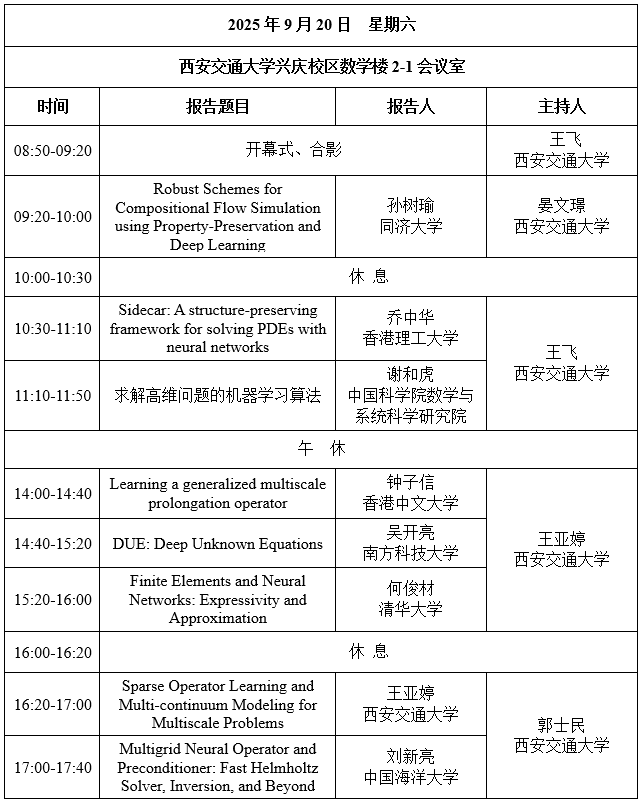 国家天元数学西北中心将于2025年9月19日至21日举办“AI 与科学计算的融合创新及未来趋势”前沿学术研讨会。研讨会将聚焦高维、多尺度、多物理场耦合复杂系统,深入探讨人工智能与科学计算的融合创新及未来趋势。研讨主题包括但不限于:如何构建保持物理特性与数学结构的深度学习方法;如何依据问题特性设计优化网络结构以提升模型逼近能力与训练效率;以及如何运用深度学习构建跨尺度的物理模型和高效算法,从而解决物理、材料等领域的核心挑战。会议将围绕新一代数值计算的关键科学问题,邀请国内外计算数学与机器学习领域的顶尖学者开展深入交流,共同探索复杂物理问题精准建模与高效计算的新理论、新方法,推动相关领域的前沿创新与突破性发展。
