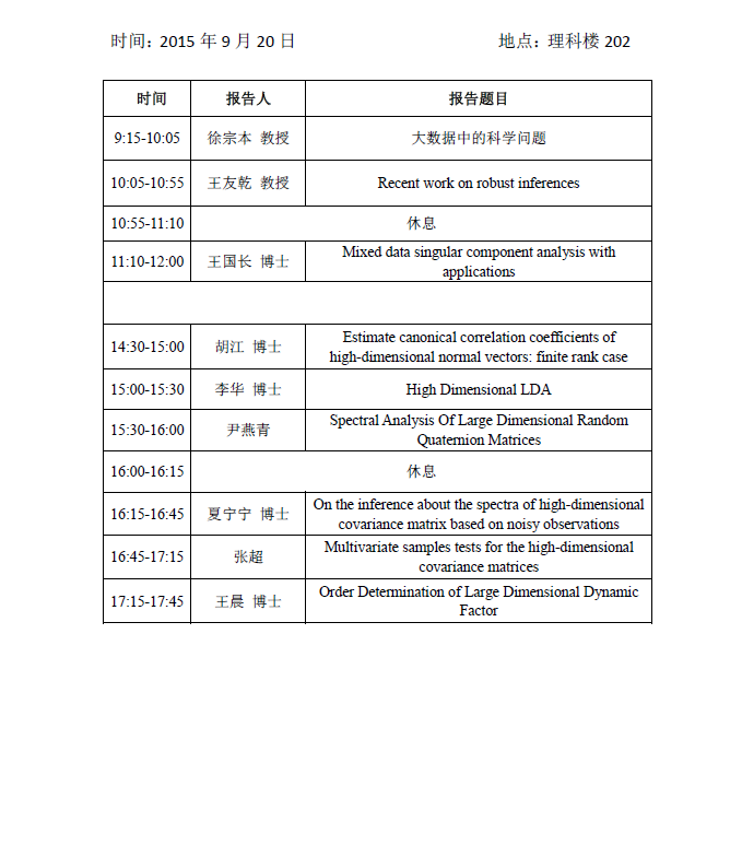 2015大数据分析方法及应用研讨会会议日程