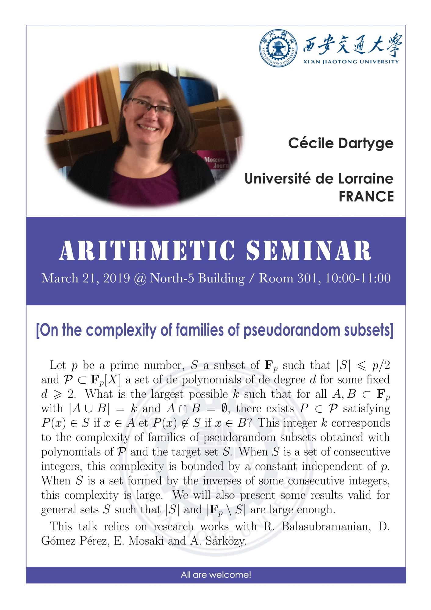 【数论系列活动19-01】法国洛林大学Cécile Dartyge教授学术报告通知