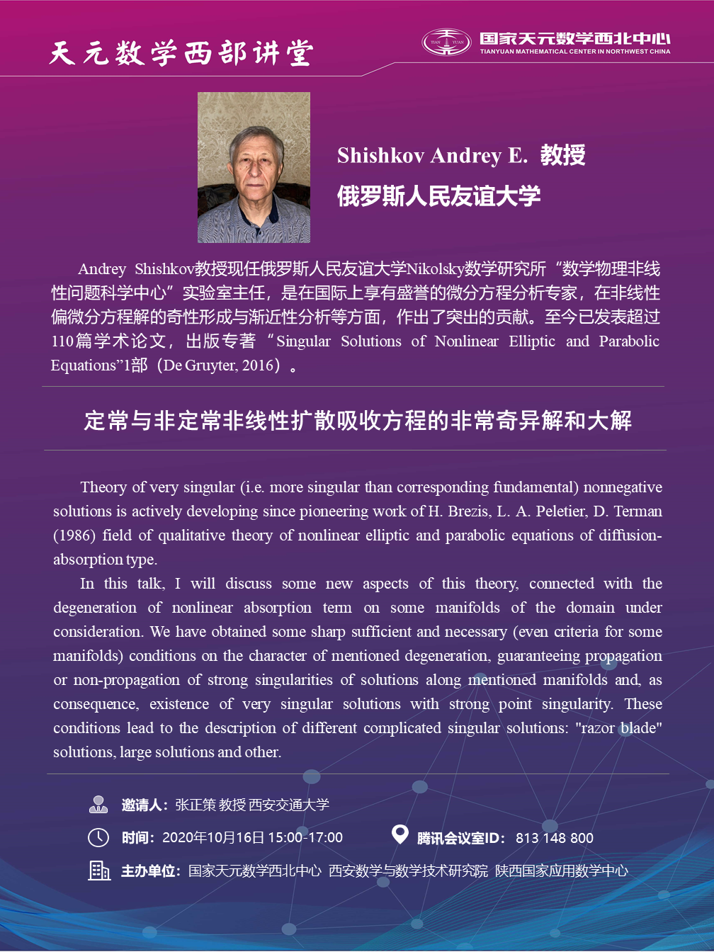 【天元数学西部讲堂】定常与非定常非线性扩散吸收方程的非常奇异解和大解