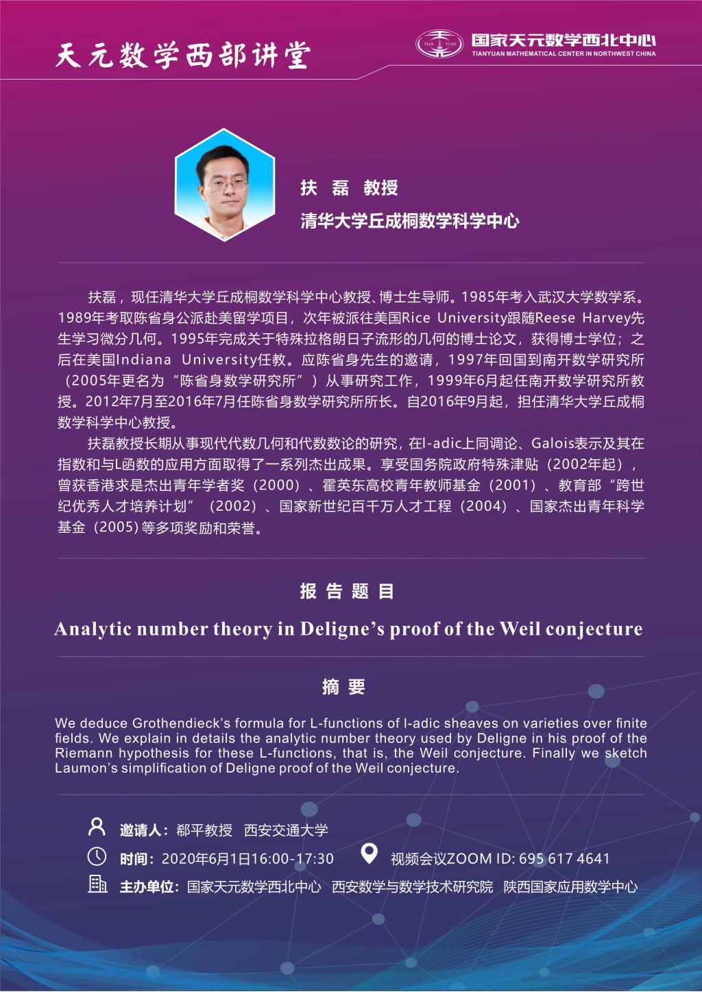 【天元数学西部讲堂】Analytic number theory in Deligne's proof of the Weil conjecture