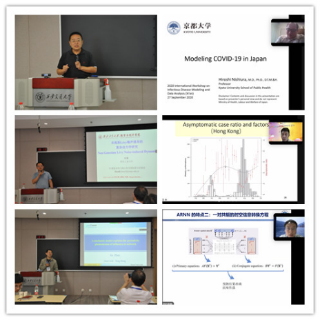 本次研讨会通过线上、线下相结合的方式开展了多场精彩的主题报告。中国疾控中心汪宁教授讲解了研究流行病学的思维方式;约克大学吴建宏教授、香港理工大学何岱海教授、西南大学王稳地教授、匈牙利赛格德大学Gergely Rost教授、京都大学Hiroshi Nishiura教授等针对COVID-19展示了一系列有意义的研究结果;美国俄亥俄州立大学楼元教授、山西大学靳祯教授、美国普渡大学Feng Zhilan教授、美国迈阿密大学Ruan Shigui教授、北京建筑大学崔景安教授等介绍了空间和接触异质性诱导的疾病传播和控制的复杂性;西北工业大学许勇教授等专家围绕传染病建模与数据分析中的随机性作了精彩的报告。与会师生围绕上述方面与多位报告专家展开了热烈的互动交流。