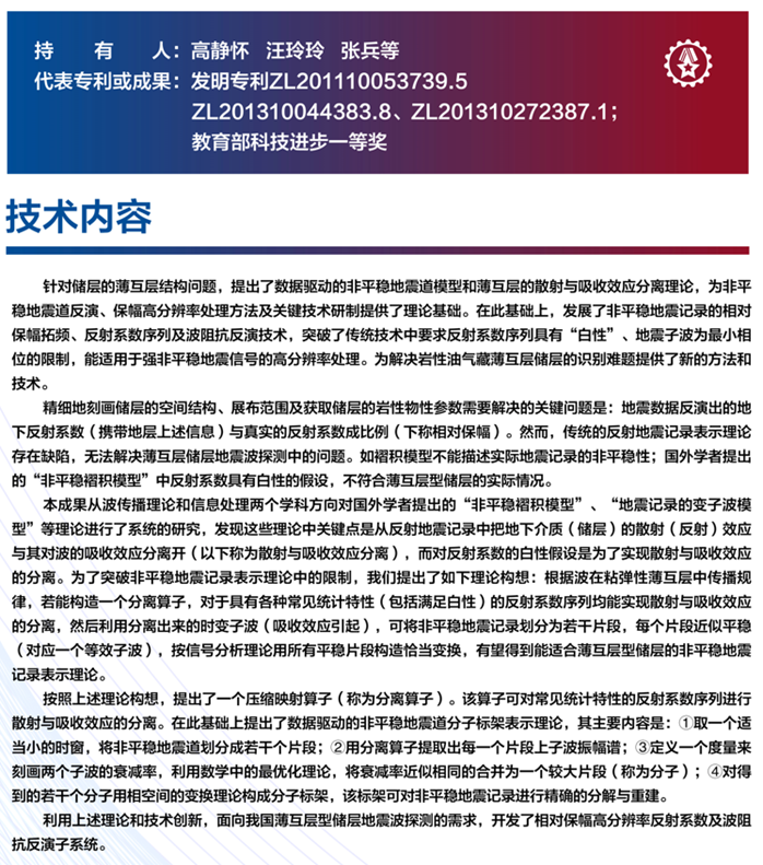 十大数学技术成果(五)数据驱动的非平稳地震道模型和保幅高分辨处理技术