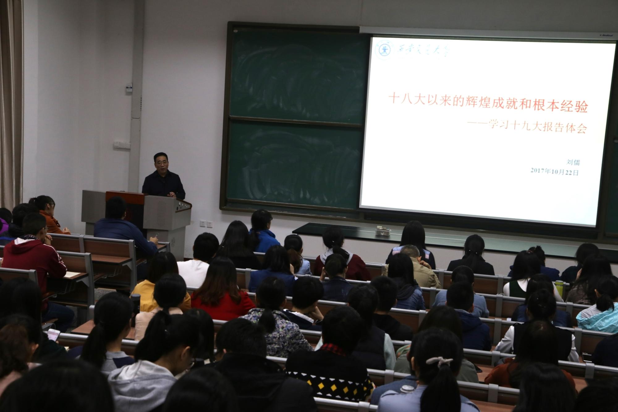 召开学习十九大精神专题报告会,邀请马克思主义学院副院长刘儒教授作“十八大以来的辉煌成就与根本经验”专题报告。学院党政领导干部和全体师生党员、积极分子共200余人参加了本次学习。