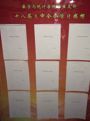 为学习贯彻十八届三中全会精神,增强改革开放,科学发展的自觉性和坚定性,同时加强学风、校风建设,提高学生党性意识和整体素质,201312月,我院组织各学生党支部举办“学习十八届三中全会精神”观影活动。各学生党支部积极参与。
