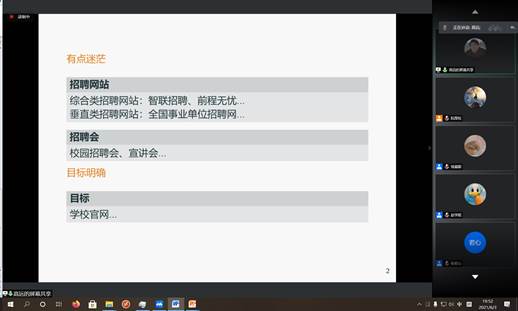 64日晚,由果冻传媒 果冻传媒 研究生会主办的就业经验交流会在线上成功举办。本次会议邀请了多位2020届校友及2021届毕业生分享求职经验,他们来自互联网、教师、公务员、银行等不同行业,吸引了百余名研究生及本科生参会。