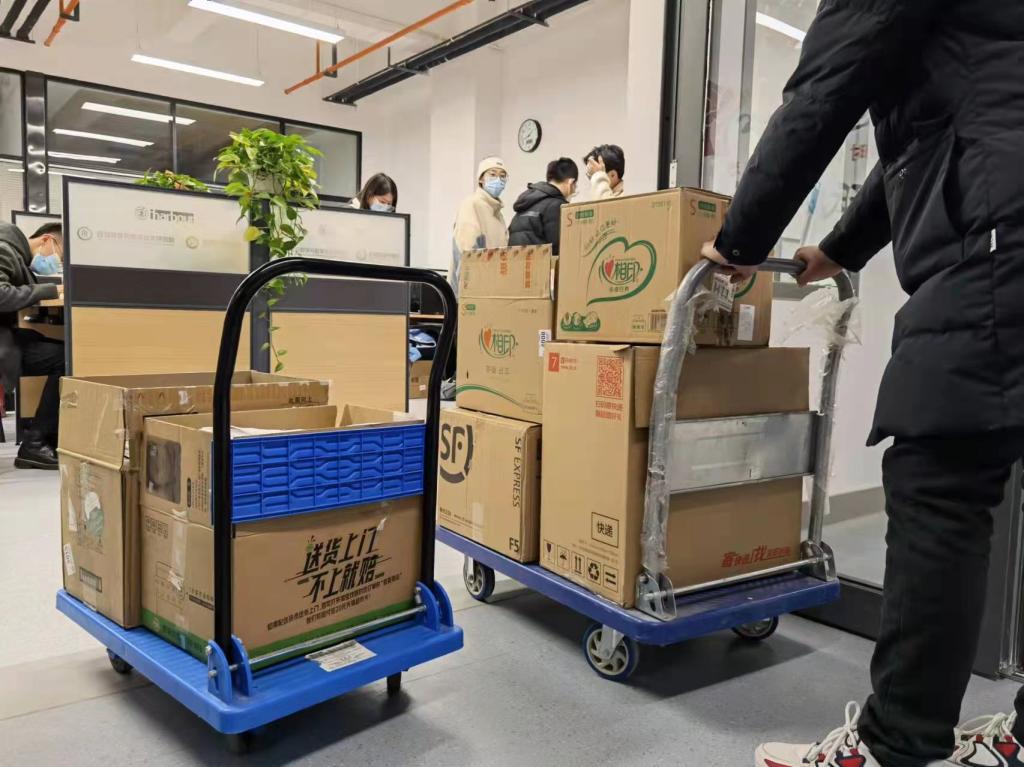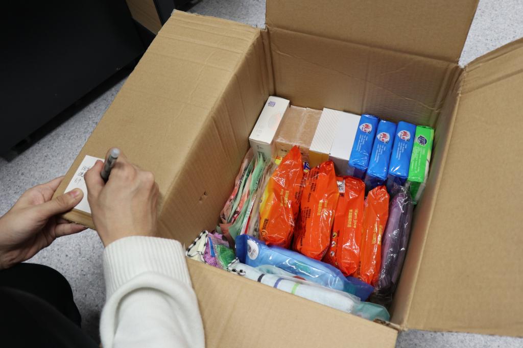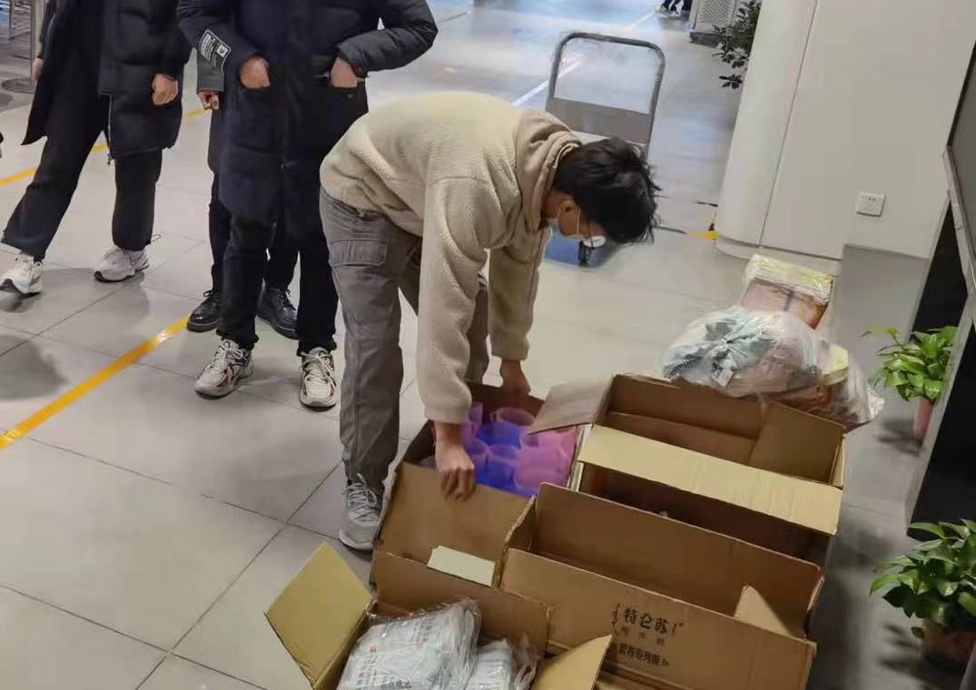 团工委针对惠风苑工作人员生活需求,集中采买毛巾、盥洗盆、牙具等物品,与学生捐赠物资一并于12月29日晚送至惠风苑一楼。
