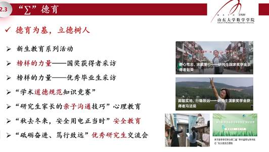 山东大学数学学院研究生会以德育为基,立德树人,从德育出发,智育、体育、美育、劳育为辅,展开研会活动,活动丰富精彩且具有学院主题特色。