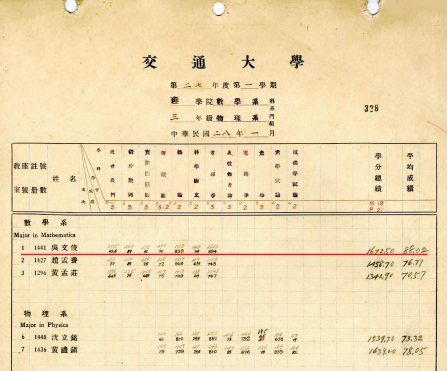 的杰出校友,1940年毕业于交通大学数学系,1957年当选为中国科学院学部委员(院士),曾获陈嘉庚科学奖、邵逸夫数学奖,是中国首届国家最高科学技术奖的获得者,并被授予“人民科学家”国家荣誉称号。作为中国最具国际影响的数学家之一,吴文俊在数学的核心领域拓扑学作出了重大贡献,他的示性类和示嵌类研究被国际数学界称为“吴公式”“吴示性类”“吴示嵌类”,至今仍被国际同行广泛引用。同时,他开创了数学机械化新领域,对数学与计算机科学研究影响深远。